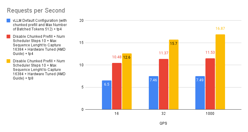 Based on the experiment we ran, we found that there’s a slight improvement with tuning the chunked prefill values over disabling the chunked prefill feature. However, if you’re not sure whether to enable chunked prefill or not, simply start off by disabling it and you should generally expect better performance than with using the default settings. This is specific to MI300X GPUs.